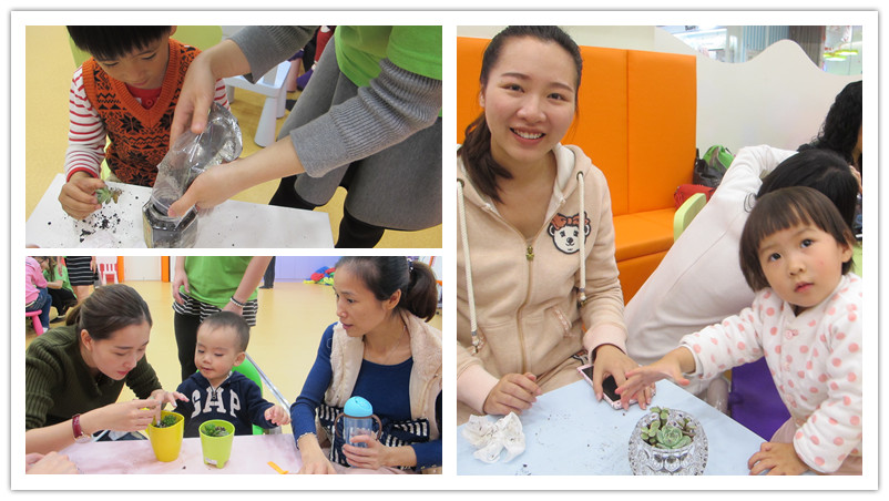 齐动手,家长们帮助小宝贝制作自己的小植物。